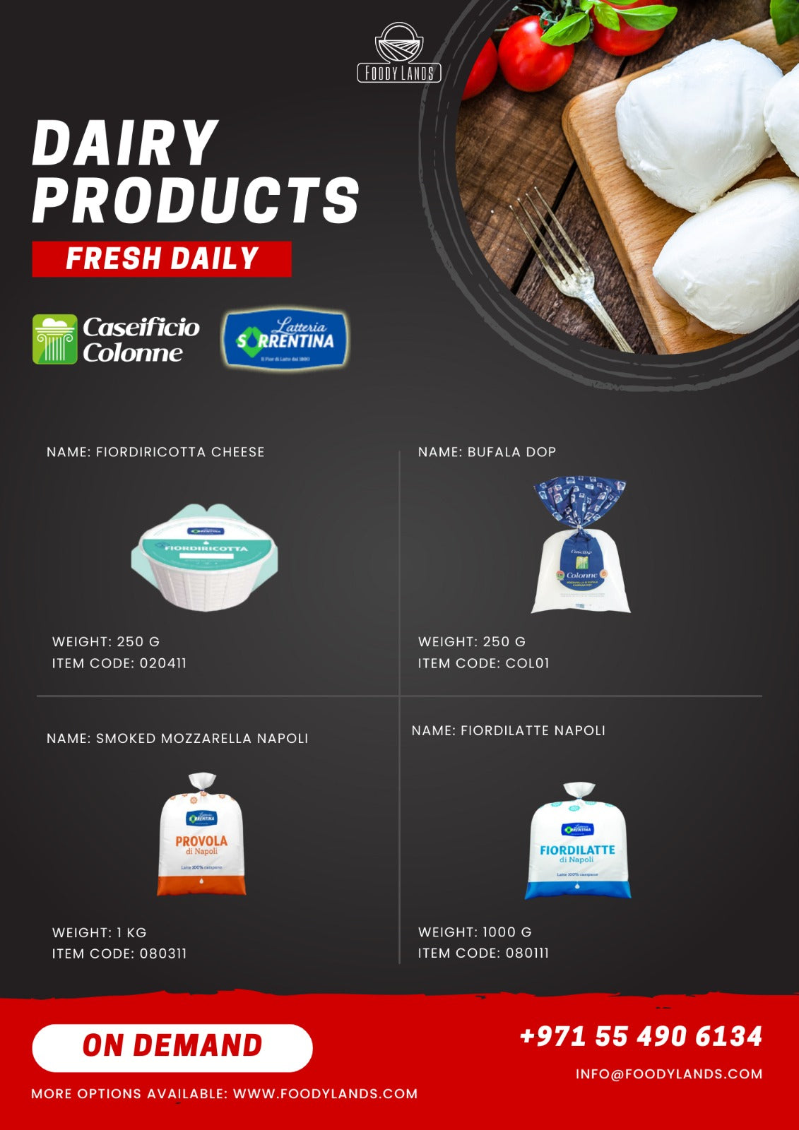 By offering fresh cheese, specifically Buffalo and Cow Mozzarella, Foody Lands enables customers to indulge in the authentic taste and texture of these beloved cheeses.
